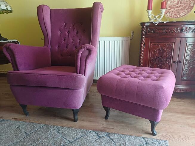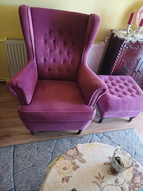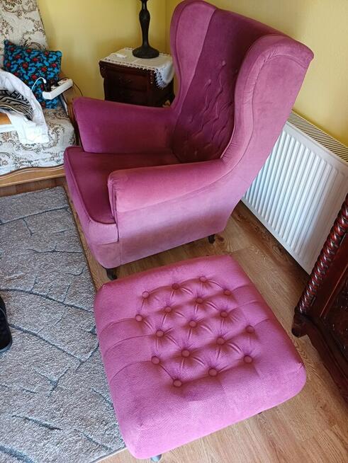 Sprzedam fotel uszak wraz z podnozkiem malo uzywane Stan idealny Odbior wlasny transport polecam ładny komplet wygodny ...